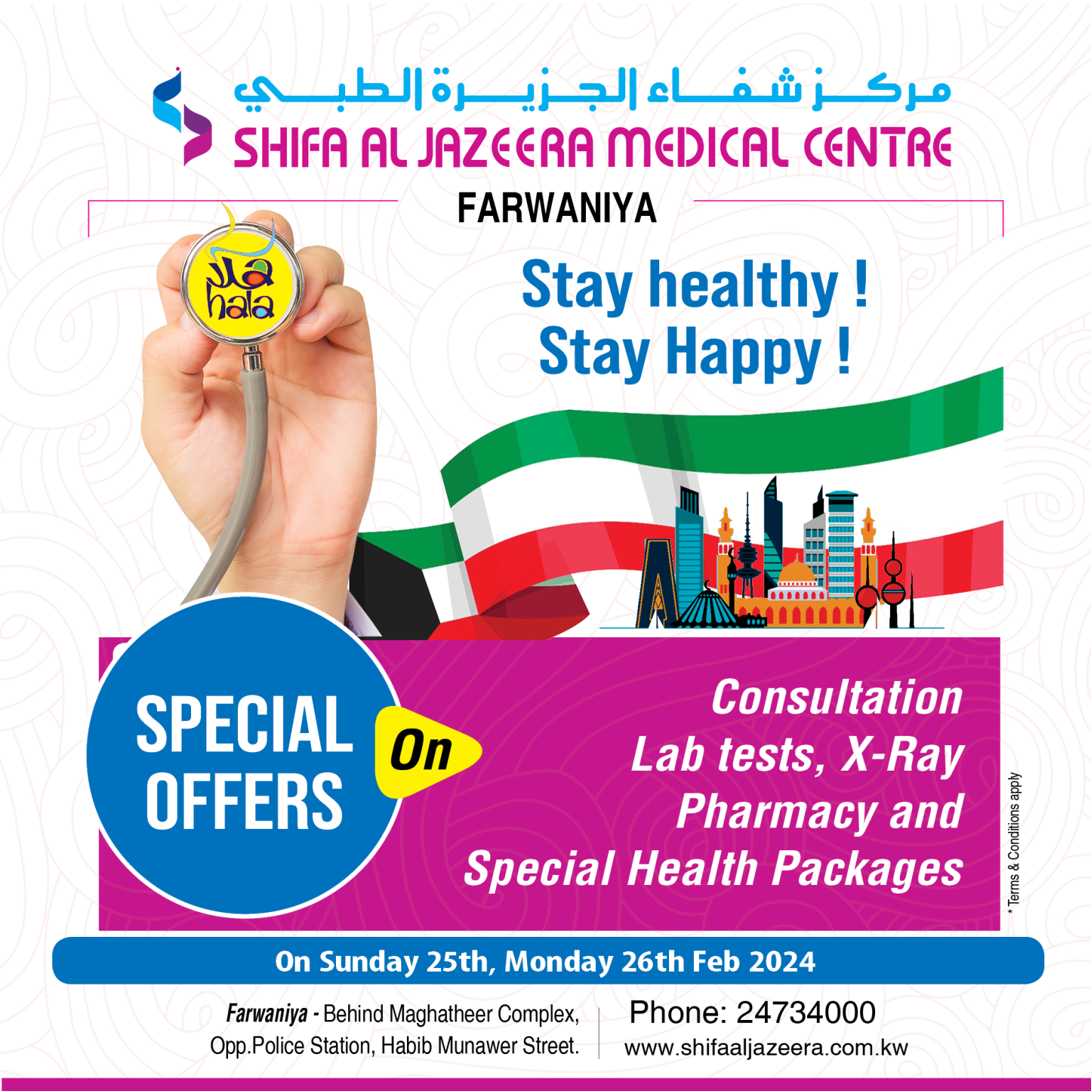 : (+965) 24734000 / 60749749 (Farwaniya)